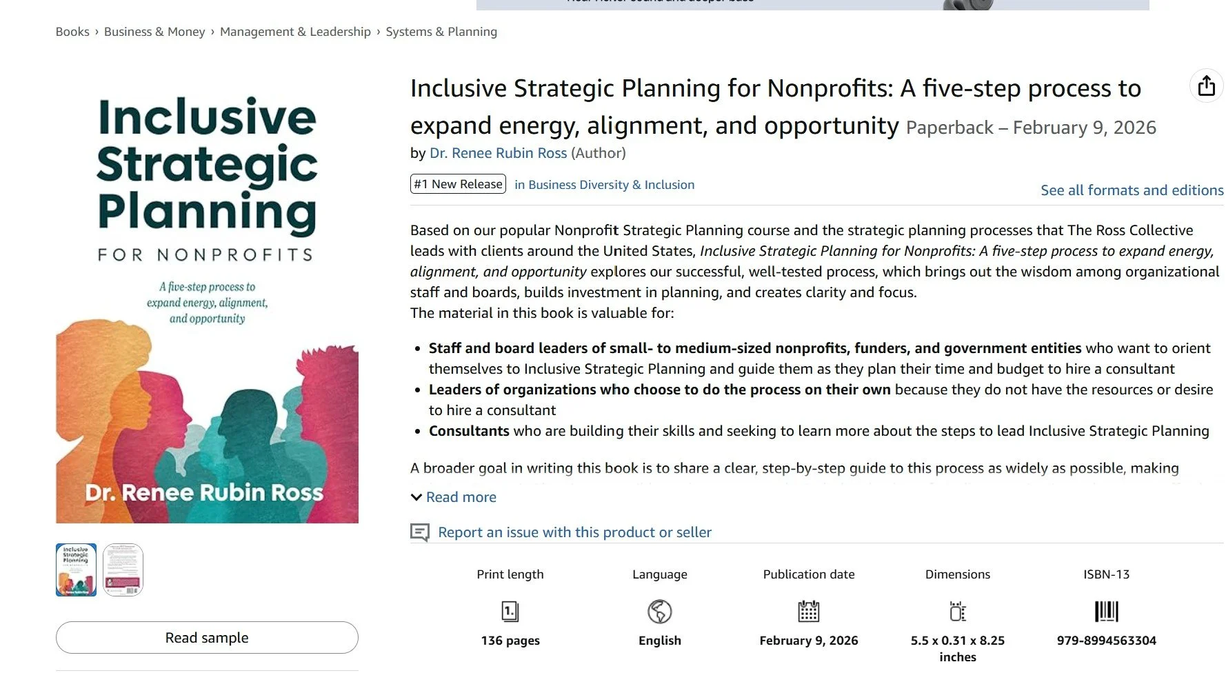 Exciting news: my book Inclusive Strategic Planning for Nonprofits: A five-step process to expand energy, alignment and opportunity has been launched into the world. At this moment, it’s even listed as a #1 New Release!